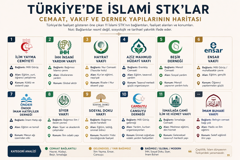 Bu yazıda ele alınan 12 kuruluş, Türkiye’deki İslami yapının üç ana damarını temsil eder: